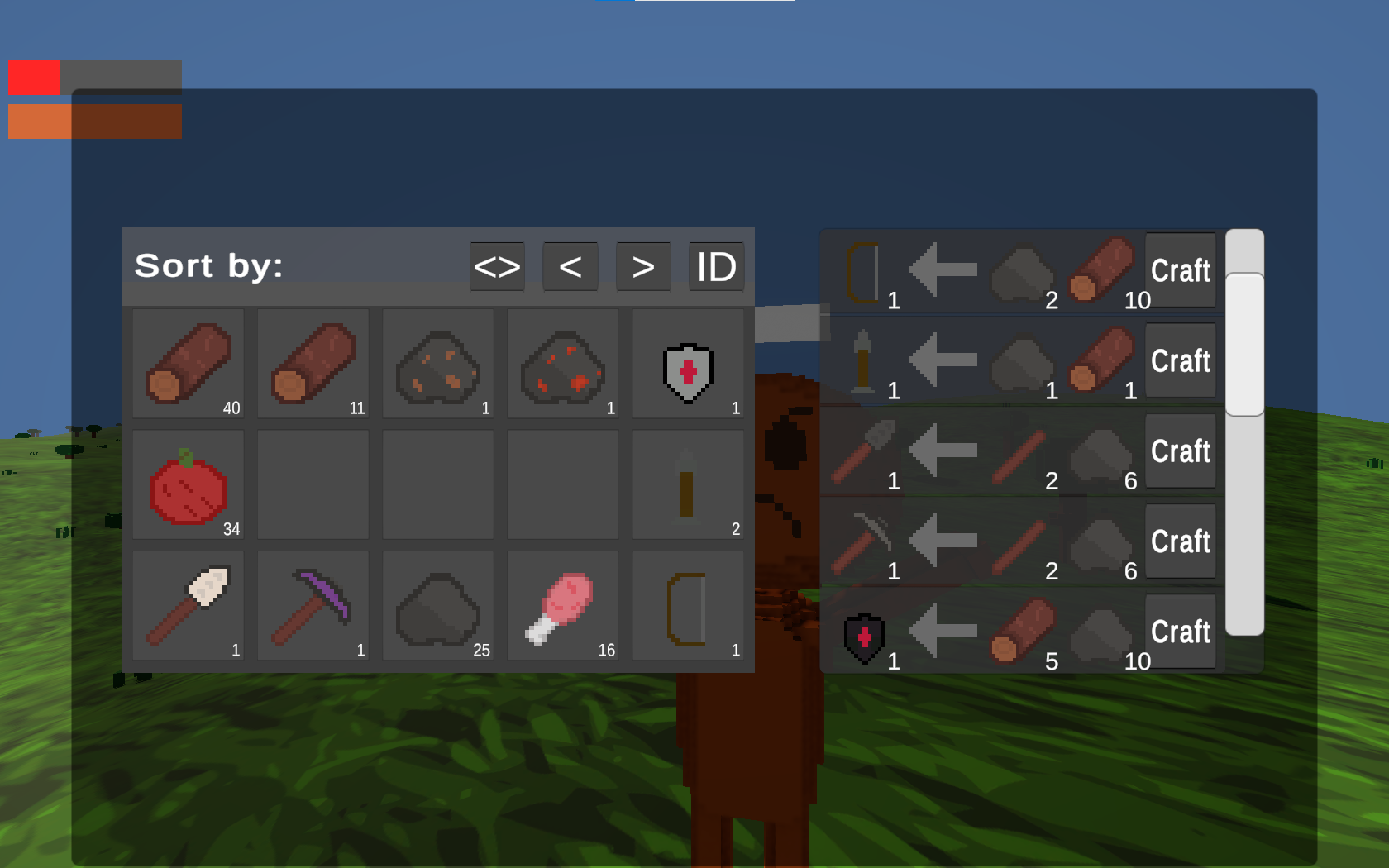 Bow: 10 wood + 2 stone